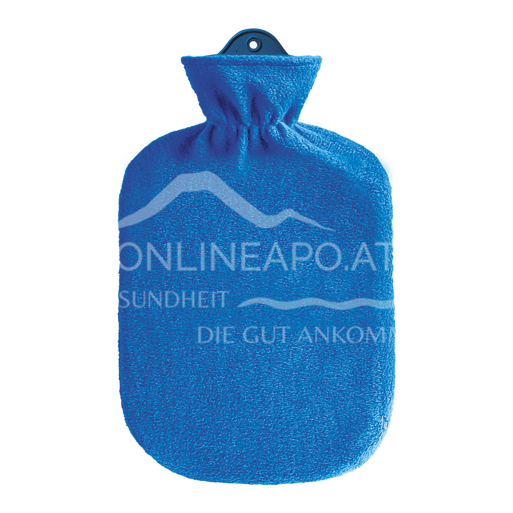 The hot water bottle fleece cover blue 2.0 litre impresses with its maximum safety and quality. Made from natural rubber without plasticisers, it guarantees long-lasting and environmentally friendly use. The continuous body without a glued-in neck piece or additional seams minimises the risk of leaks. With a generous capacity of 2 litres, it provides long-lasting warmth for colds or muscle tension.