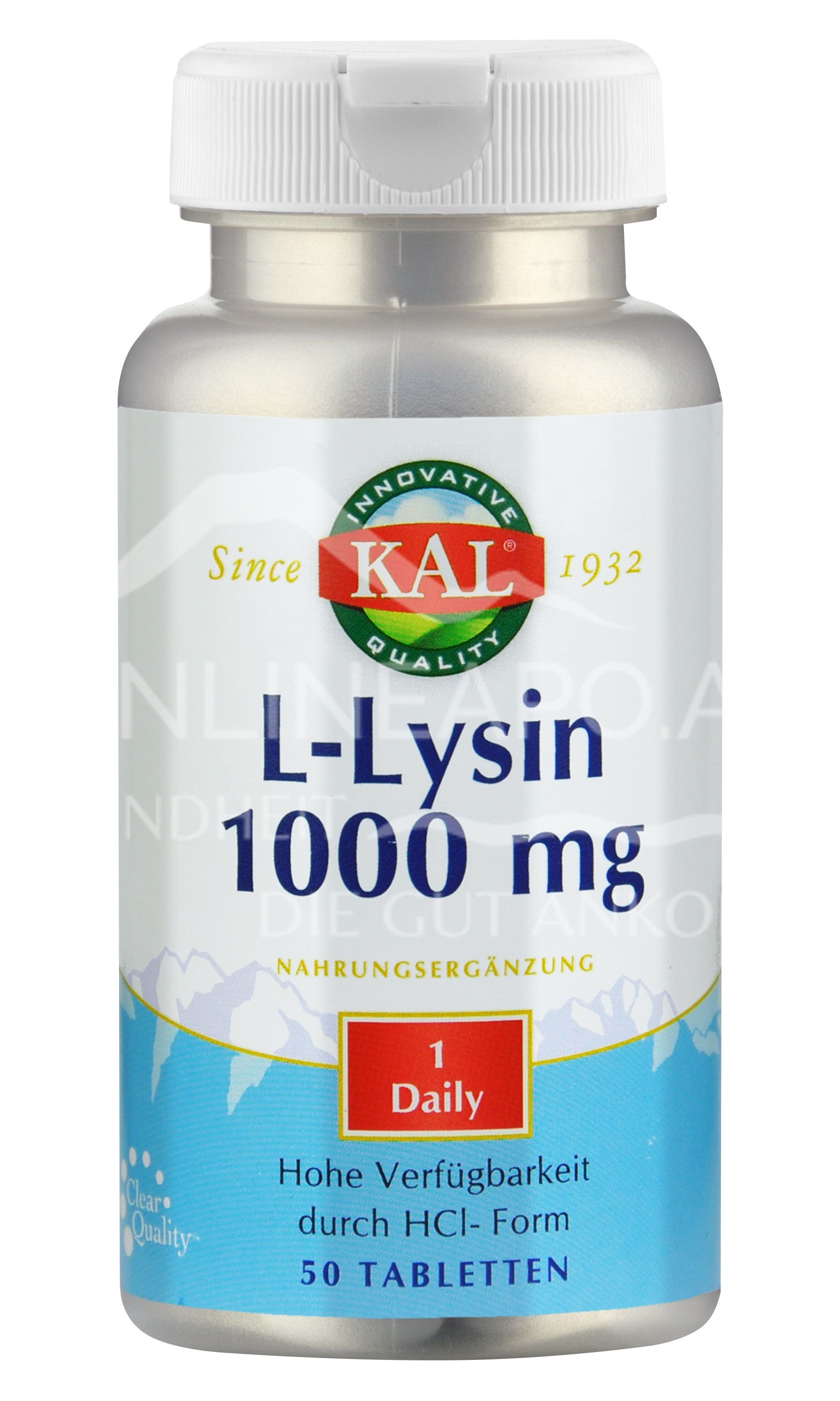 Food supplement with L-lysine. Contains 50 tablets, one tablet of which provides 1000 mg L-lysine. The tablets are vegan, GMO-free, lactose-free, sugar-free and gluten-free.