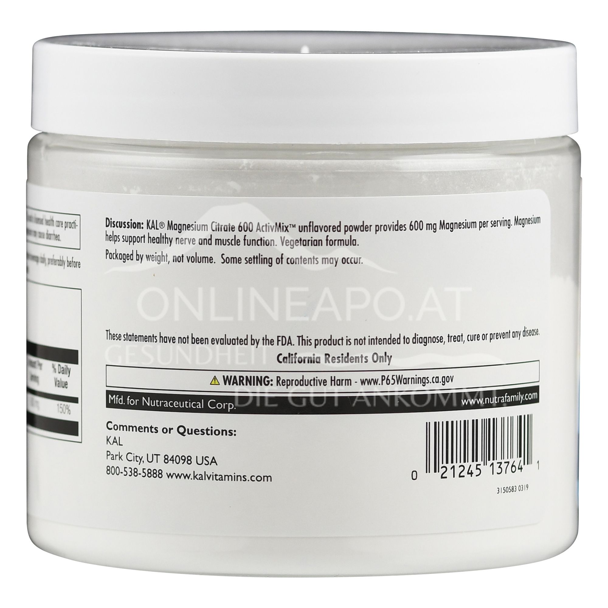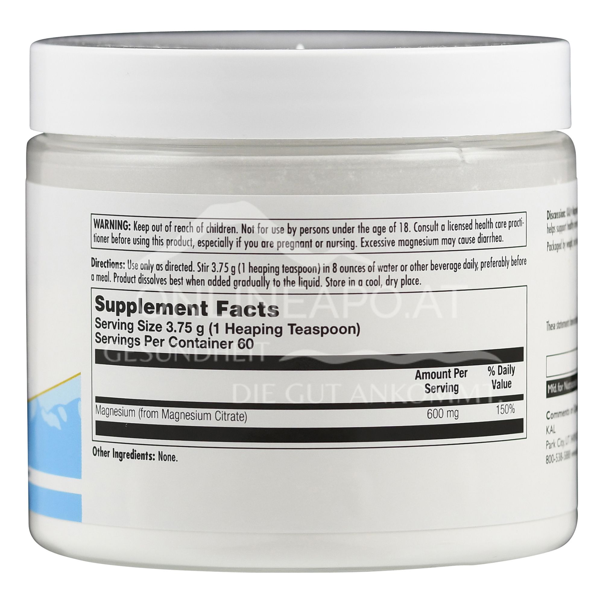 Warnings - Supplementa Magnesium Citrate 600 mg powder