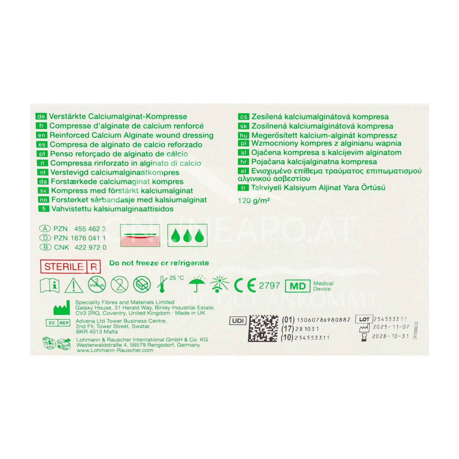 - The reinforced Suprasorb® A Pro calcium alginate dressings / tamponades are intended for single use only and must not be resterilised.