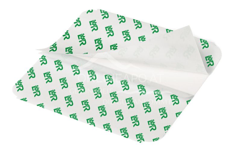 Material: Polyethylen, Polyurethan, Polyacrylat, Papier mit Polydimenthylsiloxanbeschichtung, Polyester mit Polyacrylatbeschichtung.