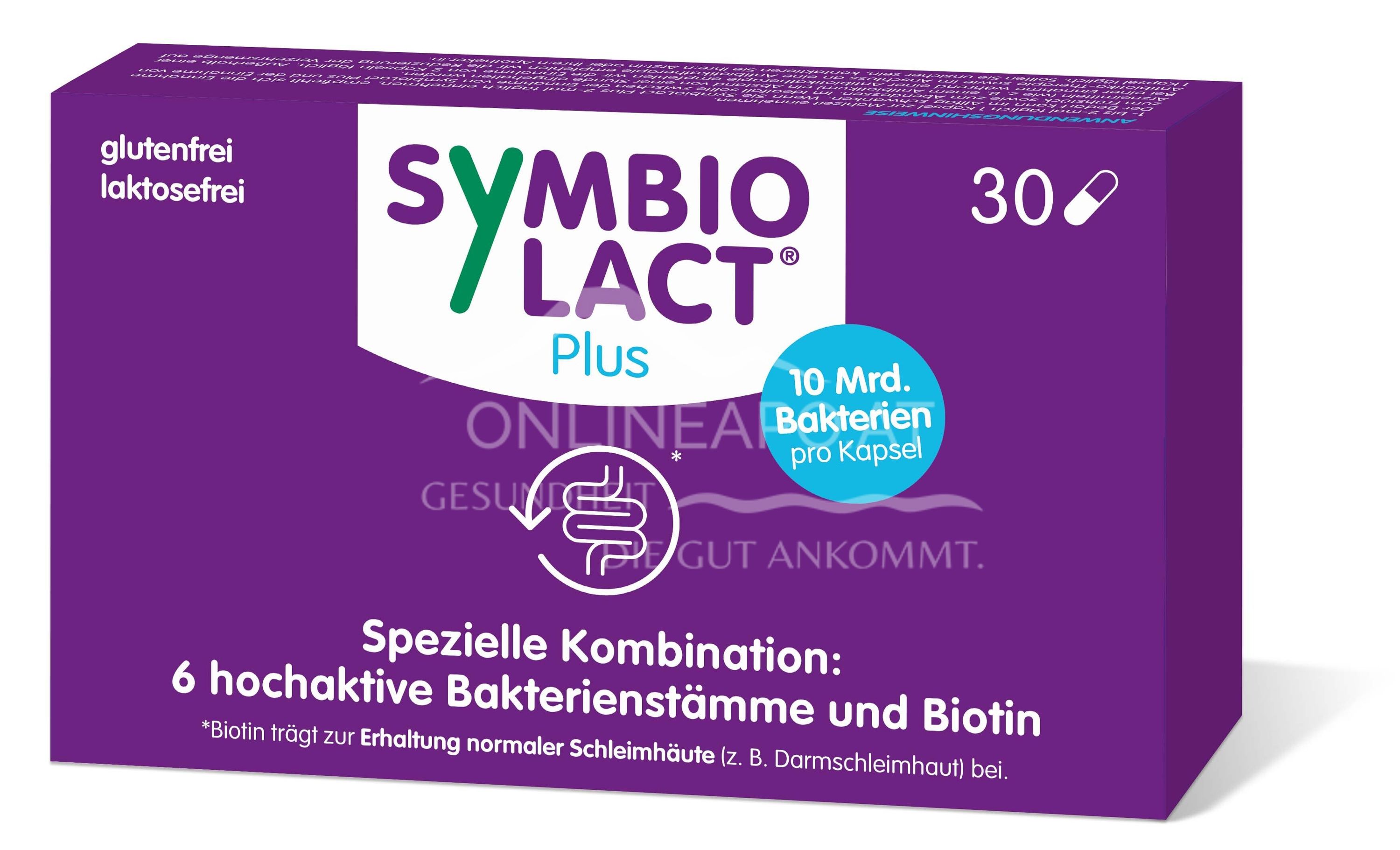 Entdecken Sie SymbioLact® Plus Kapseln zur Unterstützung Ihrer Darmgesundheit. Mit 6 ausgewählten Stämmen Milchsäurebakterien und Biotin trägt es zur Erhaltung einer normalen Darmschleimhaut bei. Ideal nach Antibiotika-Therapien.