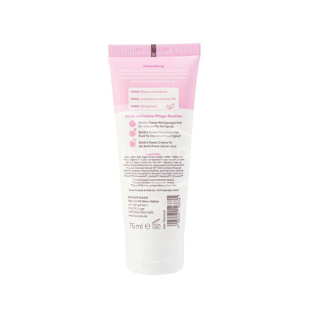 Discover the Baldini Rose Cleansing Milk in Demeter quality. With real rose hydrolate, apricot kernel oil & shea butter, it cleanses gently and naturally. 100% organic cosmetics without drying out - ideal for your daily skincare routine.