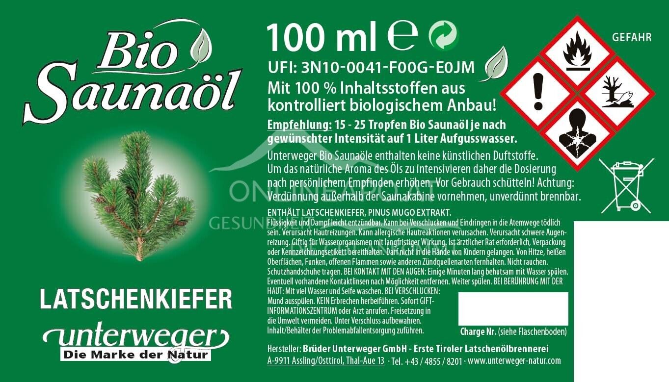 Verwandeln Sie Ihre Sauna in eine Wohlfühloase mit dem Bio Saunaöl Latschenkiefer von Unterweger. Der würzig-frische Duft des naturreinen ätherischen Öls belebt die Sinne, fördert die tiefe Entspannung und sorgt für ein unvergessliches Aufgusserlebnis.