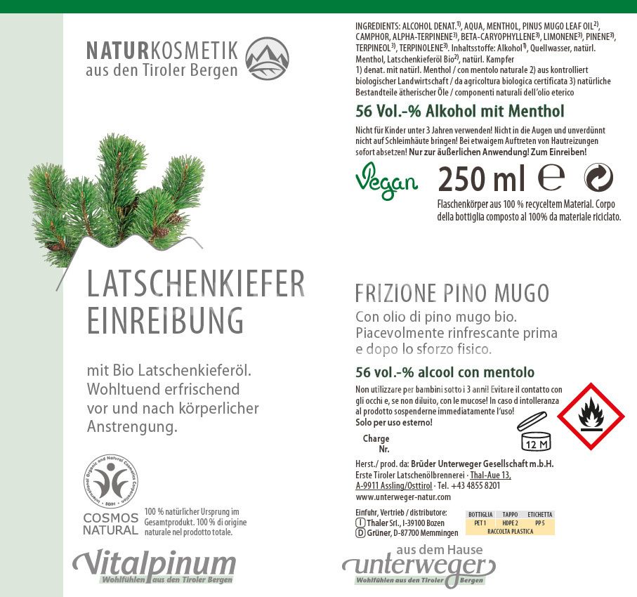 Unterweger Vitalpinum mountain pine cream is infused with the refreshing power of the Tyrolean mountains. It has a revitalising effect on tiredness and fatigue and ensures an invigorating sense of well-being in everyday life.