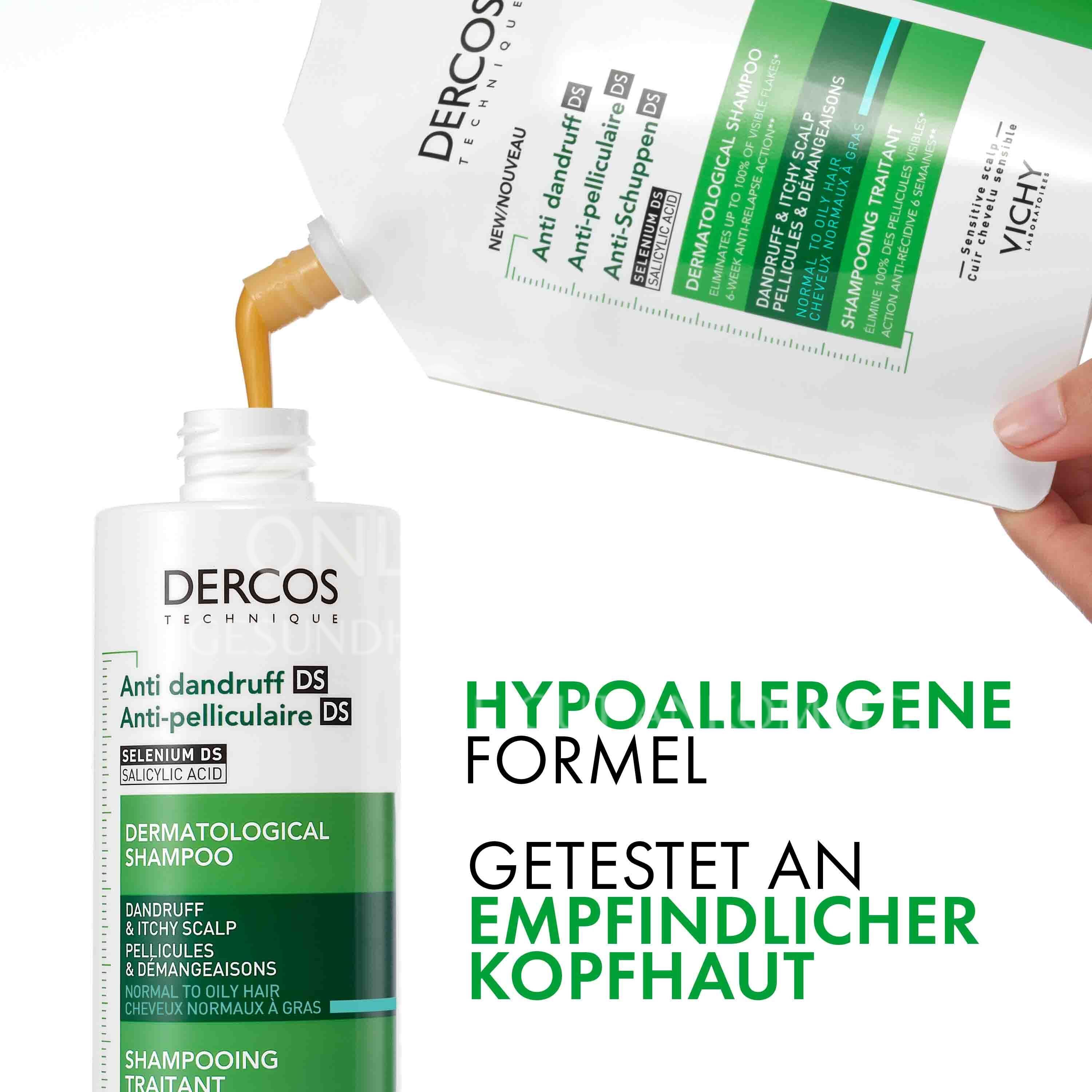 Vichy DERCOS Anti-Schuppen Shampoo für normales bis fettiges Haar: Selendisulfid und Salicylsäure entfernen Schuppen von der Kopfhaut, mildern Juckreiz und beugen einer erneuten Schuppenbildung vor.