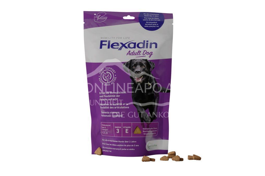 Die Vetoquinol Flexadin Adult Dog Chews sind ein Ergänzungsfuttermittel für Hunde im Hundesport oder bei anderweitiger Beanspruchung der Gelenke - Chews mit UC-II®.