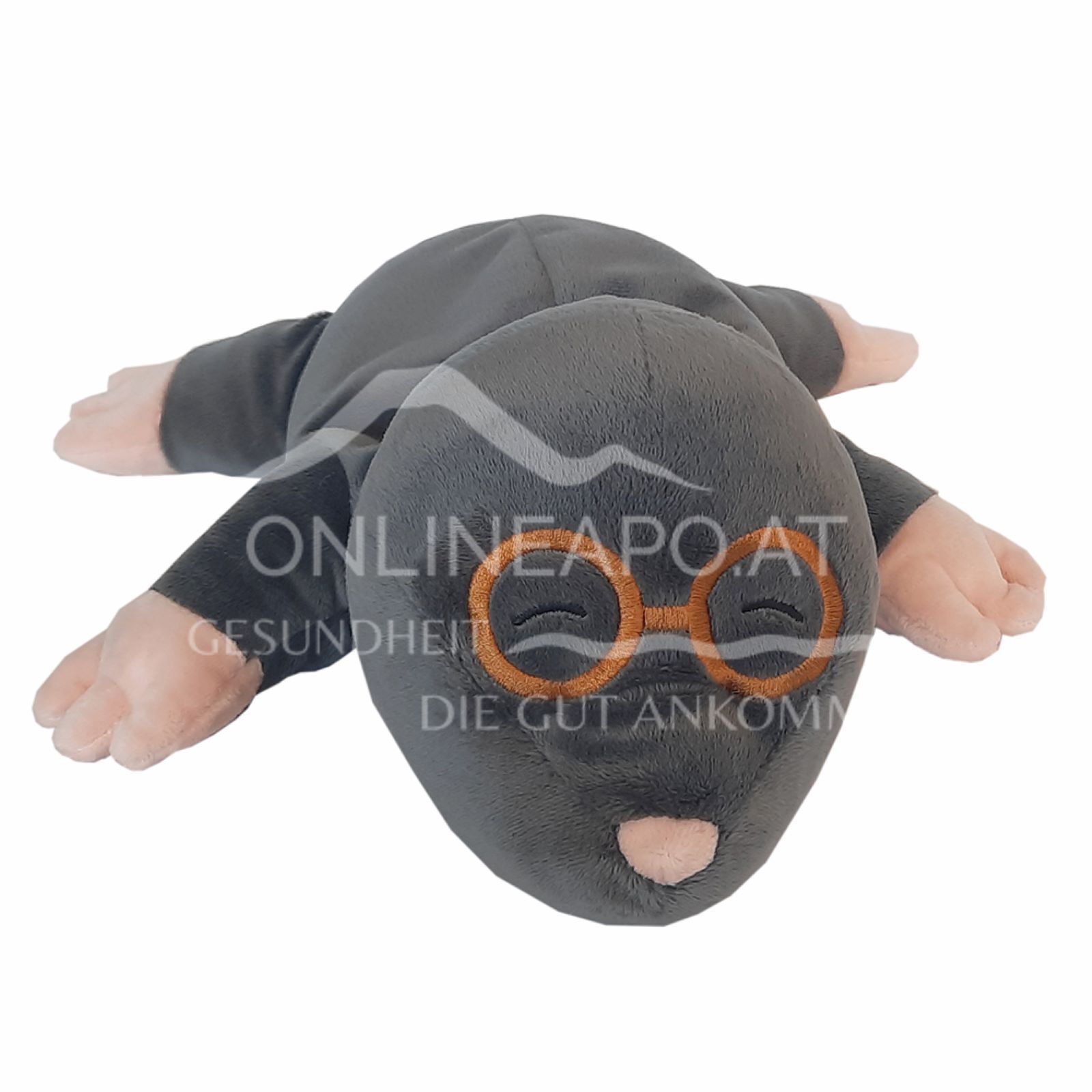 He's not afraid of missing out on anything when he closes his eyes and takes a little nap with a smile. His favourite place to do this is on your tummy, warming you up with his soothing lavender scent while he dreams of spring days. He spreads a cosy atmosphere and ensures peaceful nights for young and old alike. The peaceful mole is around 35 cm long and weighs approx. 720 g.