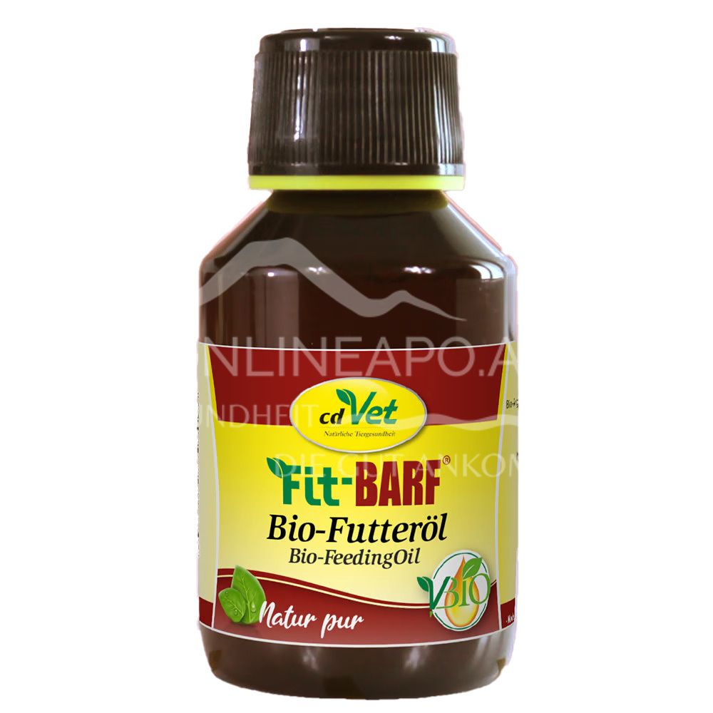 CdVet Fit-BARF organic feed oil is a supplementary feed for dogs and cats. High-quality natural feed additive for balanced and healthy feeding with raw meat and for the needs-based supply of important fatty acids.