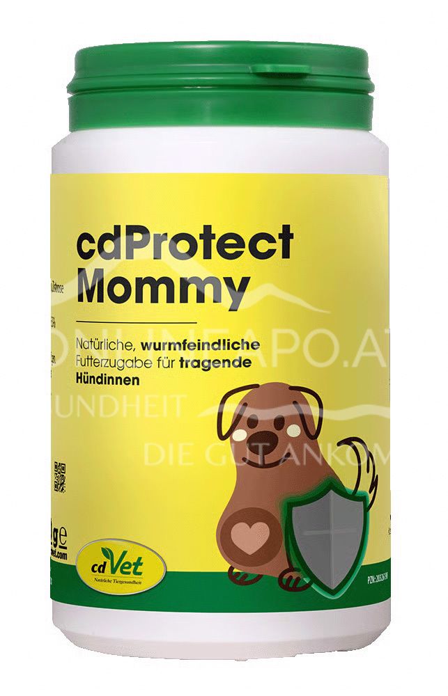 cdVet cdProtect Mommy is a natural feed supplement for pregnant bitches to promote an intestinal environment that is hostile to worms. With coconut & pumpkin seeds - safe for puppies. Ideal for breeders who want to avoid chemicals.