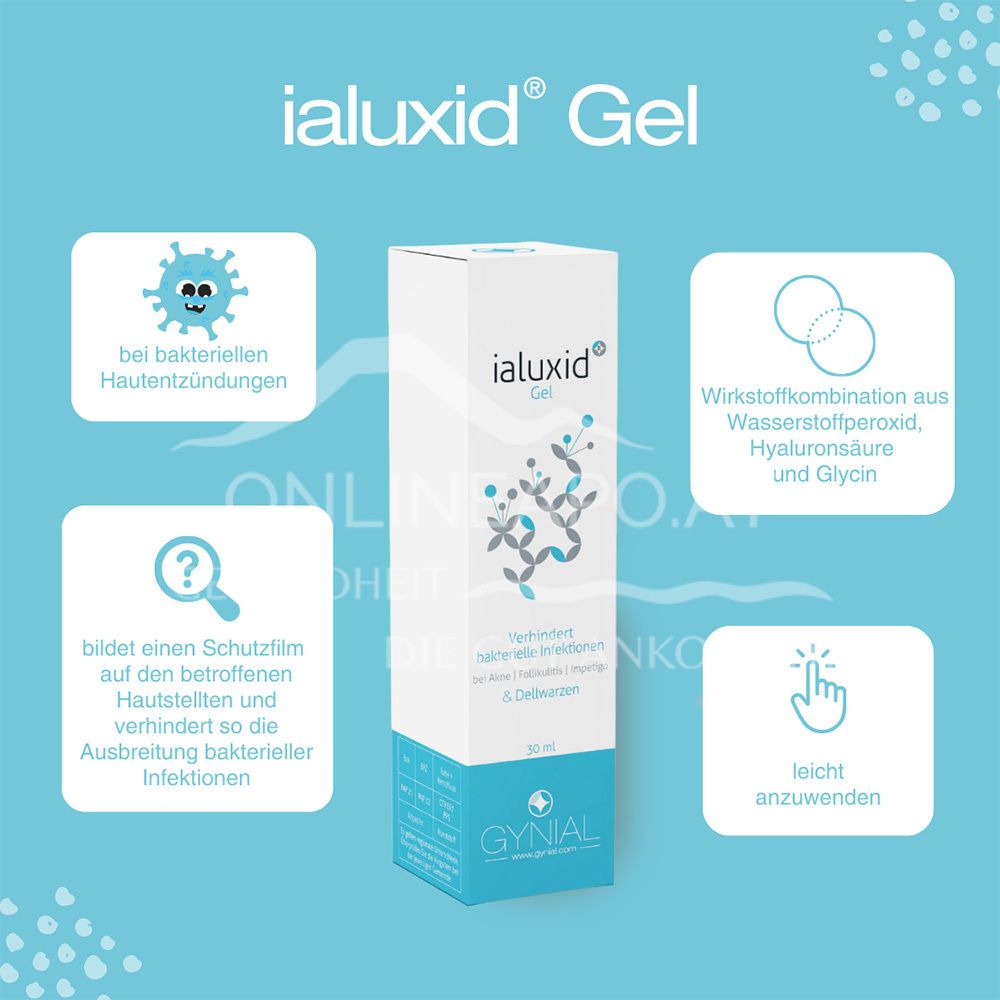 ialuxid® Gel ist ein Medizinprodukt zur äußerlichen Anwendung. Es beugt bakterieller Infektionen bei Akne, Follikulitis, Impetigo & Dellwarzen vor. Es bildet einen Schutzfilm auf den betroffenen Hautstellen und verhindert so die Vermehrung von Keimen.