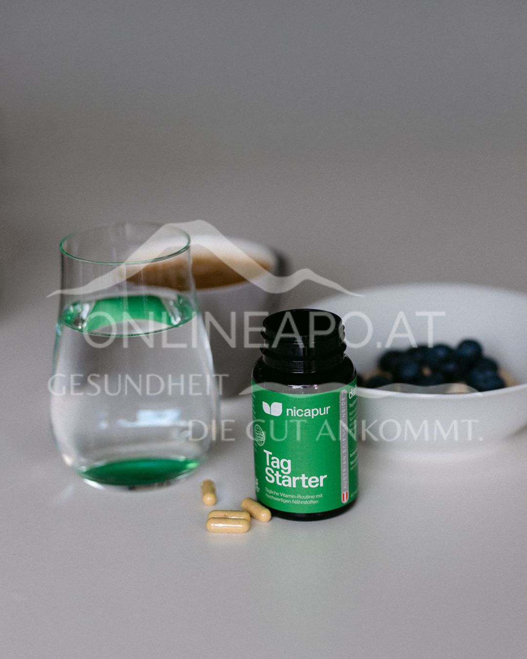Get your day off to a perfect start with Nicapur® TagStarter, your daily all-in-one formula for energy, defences and vision. The uncomplicated basic supply of just 2 capsules is ideal for a modern lifestyle. Vegan & gluten-free.