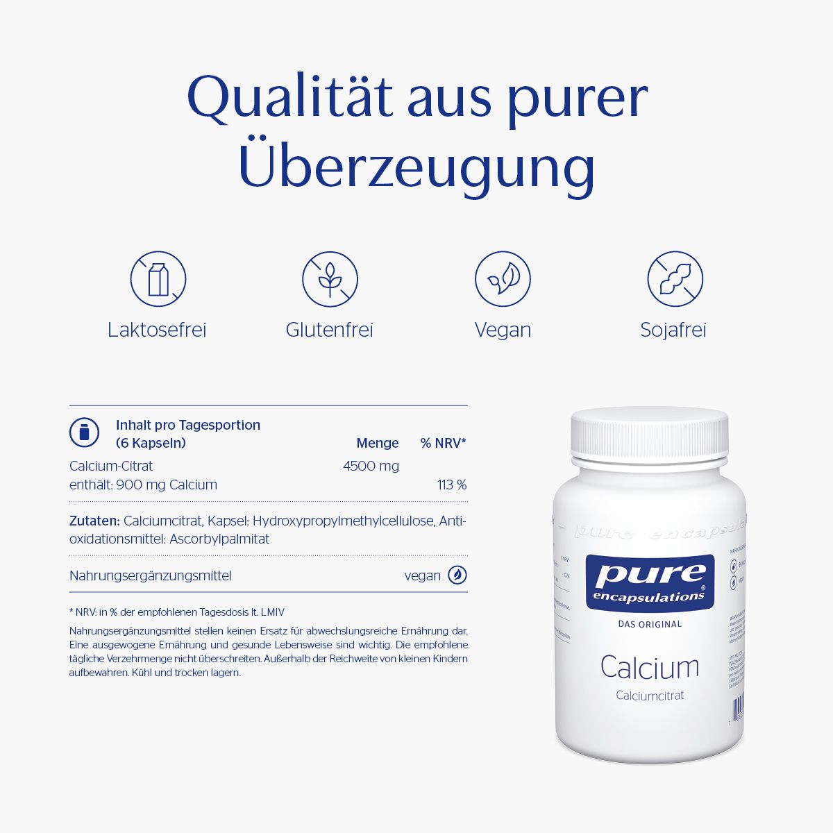 - Inhalt pro Tagesportion (6 Kapseln) Calcium – Citrat (enthält: 900 mg Calcium) 4500 mg.