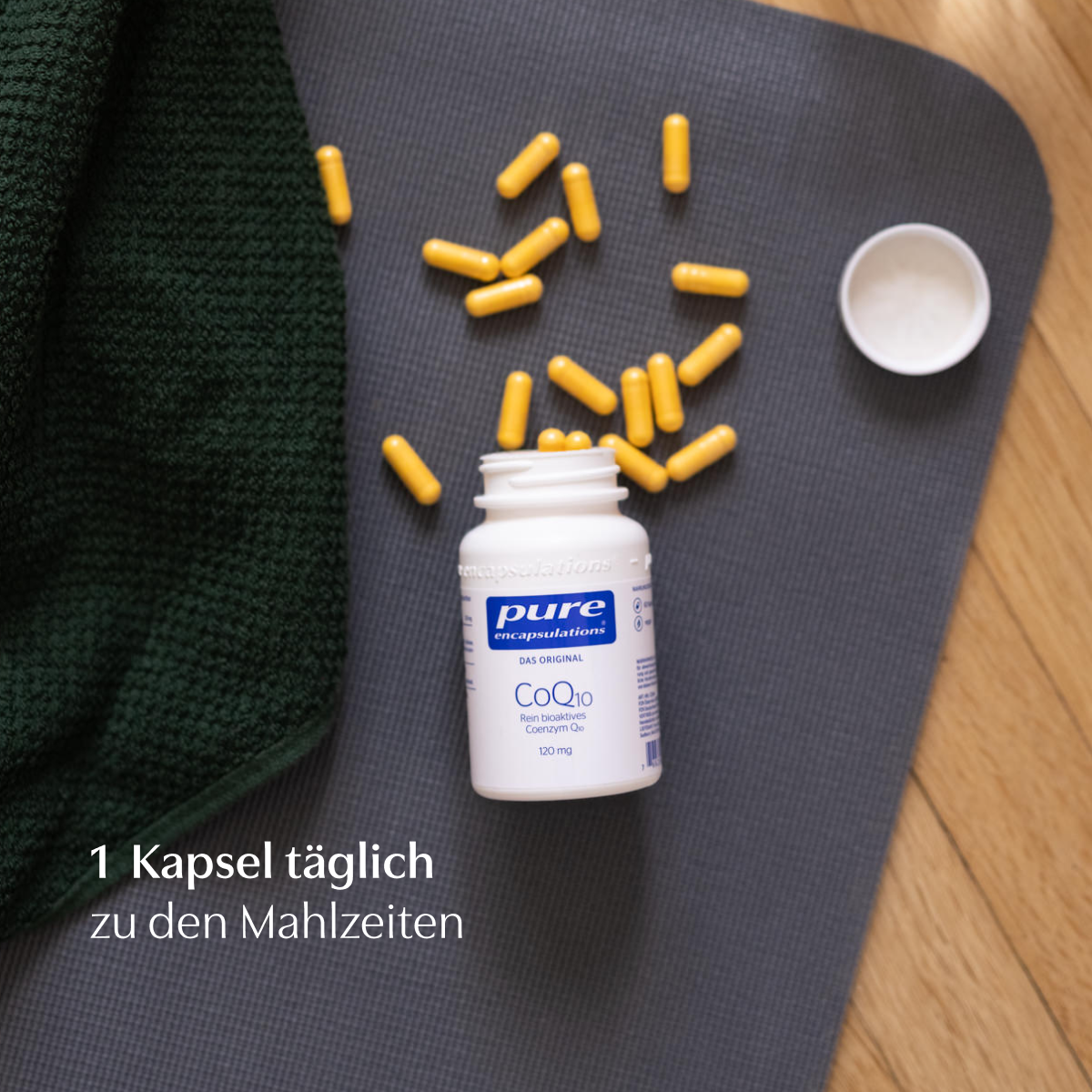 pure encapsulations® CoQ10 120 mg - Wird über Fermentation gewonnen und liefert dadurch ausschließlich die biologisch aktive Form. Ab 30 nimmt die endogene Produktion kontinuierlich ab.