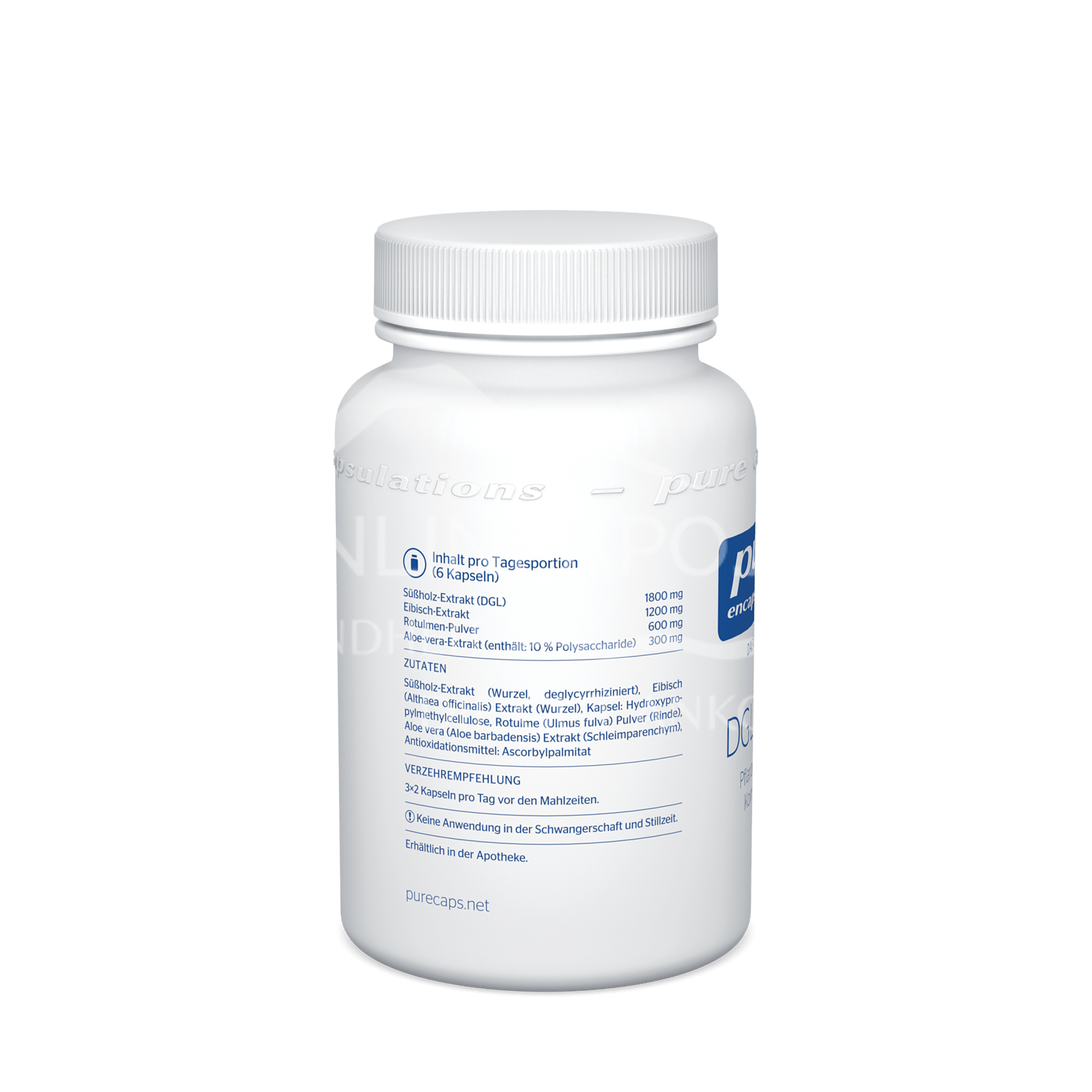 pure encapsulations® DGL Plus® - Contains extracts of liquorice, marshmallow, mucilage and aloe vera, which are rich in mucilage. The ingredients are ideally balanced.