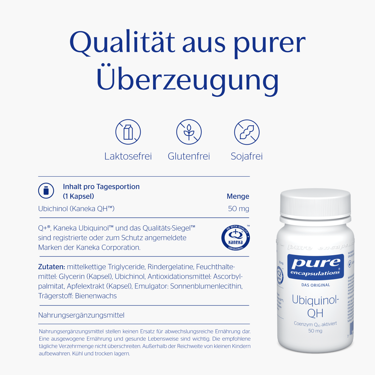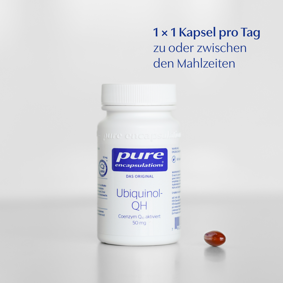 The pure encapsulations® Ubiquinol-QH 50 mg capsules are a dietary supplement with ubiquinol. Ubiquinol is the already activated coenzyme Q10. The raw material is obtained via a biofermentation process.