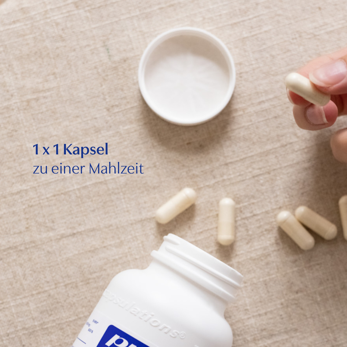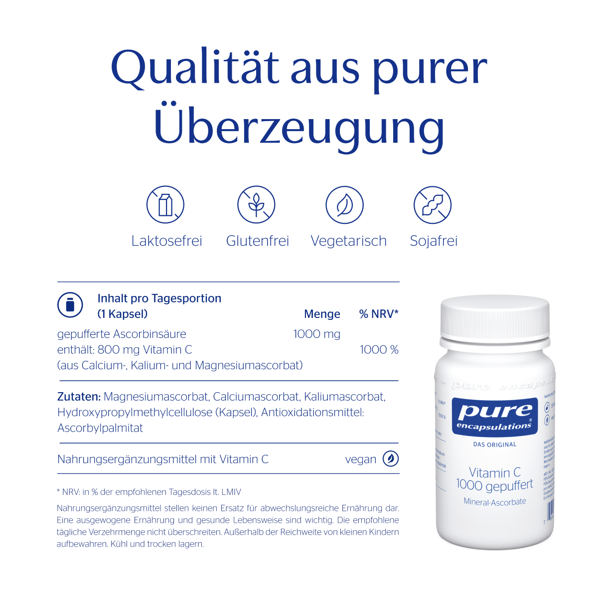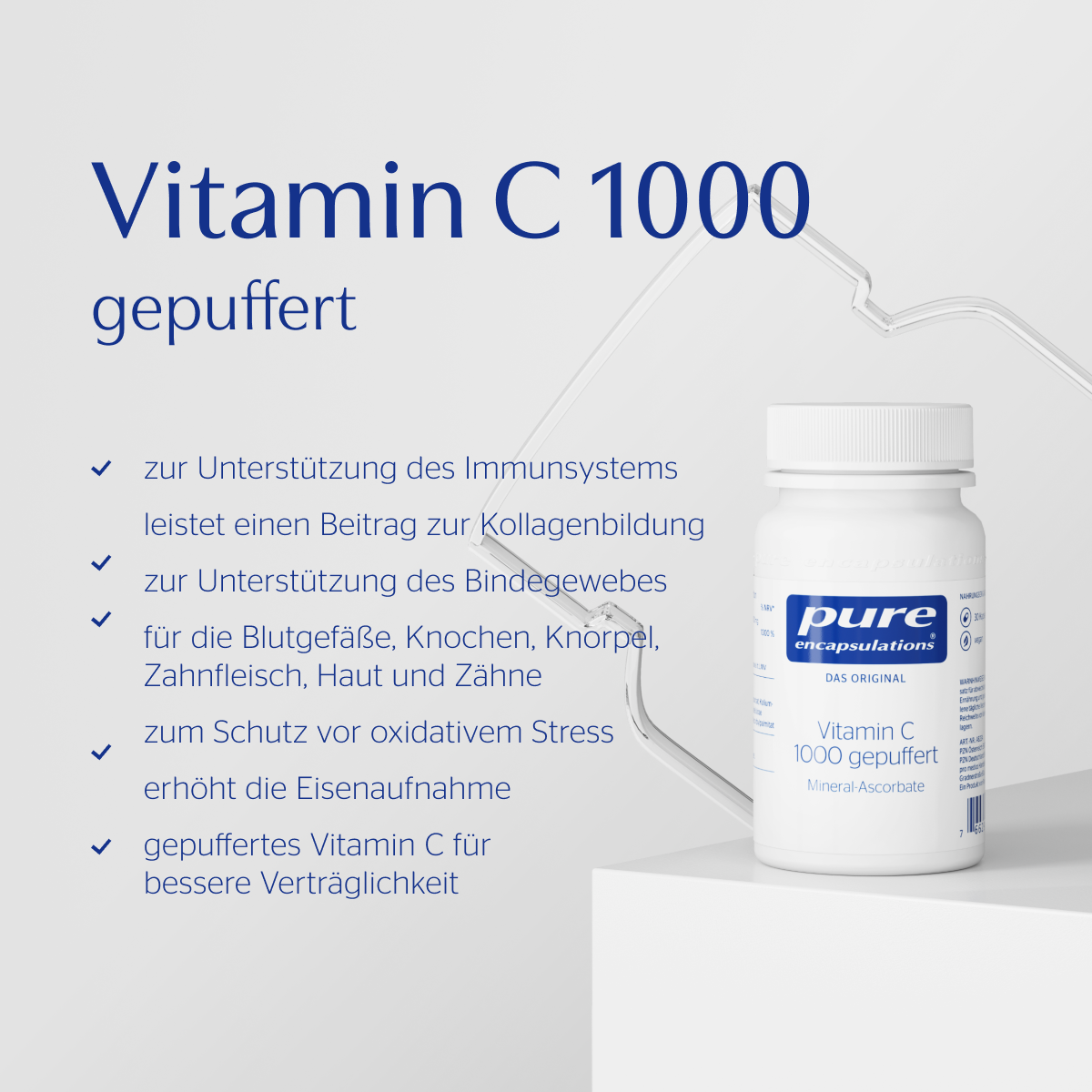 Als magenschonende Version des Mikronährstoffs ist Vitamin C gepuffert von Pure Encapsulations an die basischen Mineralstoffe Kalium, Magnesium und Calcium gebunden. Weil Vitamin C aufgrund des niedrigen pH-Werts bei empfindlicher Verdauung möglicherweise schlecht vertragen wird, schafft diese Kombination ein Gleichgewicht. Denn die Säurebelastung für den Magen wird dadurch reduziert und die gepufferte Variante ist somit besonders verträglich, so dass die Anwendung auch für sensible Menschen geeignet ist.