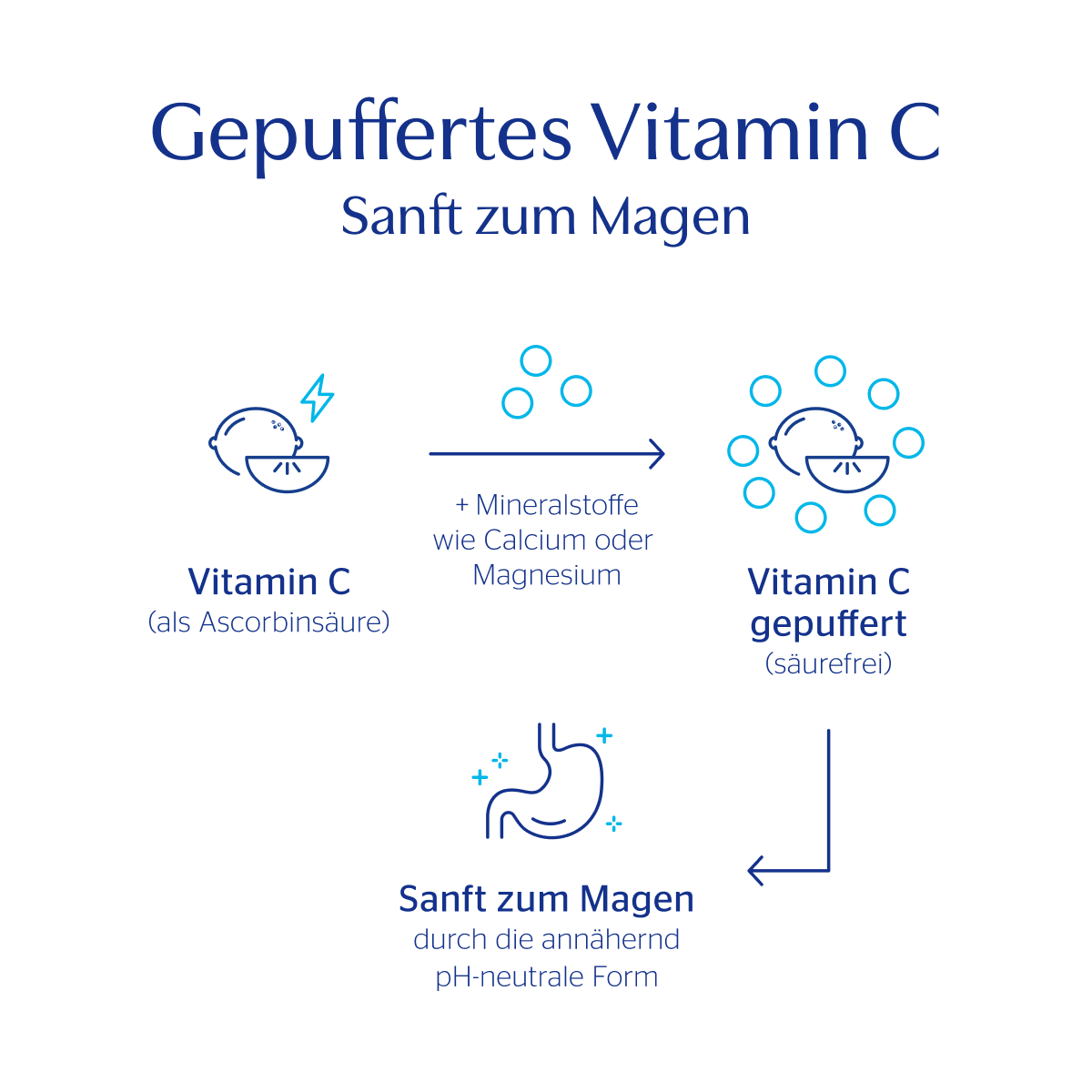 - Gepuffertes Vitamin C ist sehr gut verträglich, auch für sensible Personen