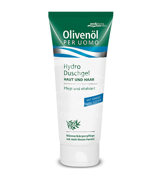 Das medipharma cosmetics Olivenöl Per Uomo Hydro Duschgel pflegt und vitalisiert mit Ginkgo und Koffein. Männerkörperpflege mit Anti-Stress-Formel.