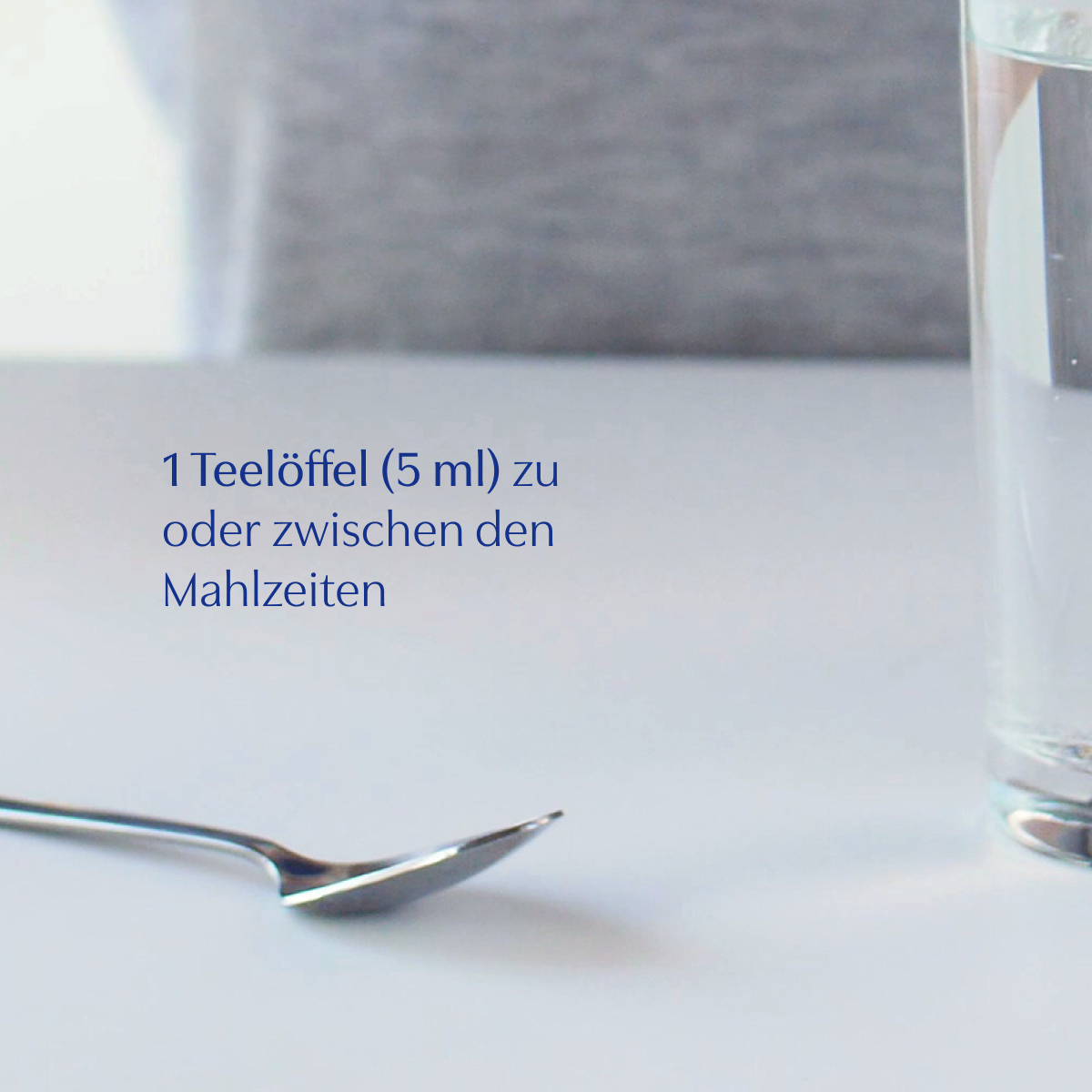 - Erwachsene: 1 Teelöffel à 5 ml pro Tag zu oder zwischen den Mahlzeiten.