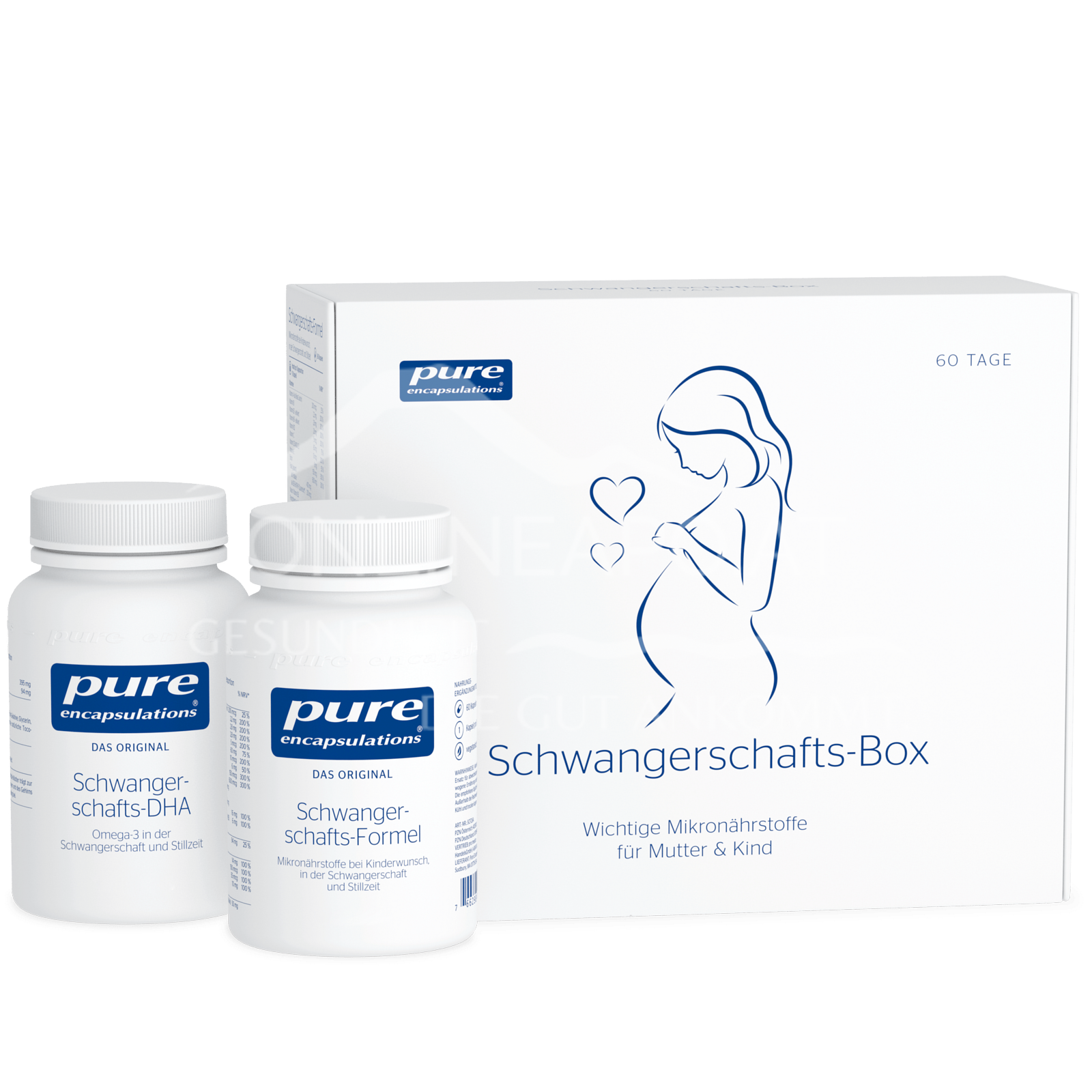 Entdecken Sie die Pure Encapsulations® Schwangerschafts-Box für eine optimale Versorgung von Kinderwunsch bis Stillzeit. Die Kombination aus Folsäure, DHA und weiteren Mikronährstoffen unterstützt die gesunde Entwicklung Ihres Babys und Ihr Wohlbefinden.