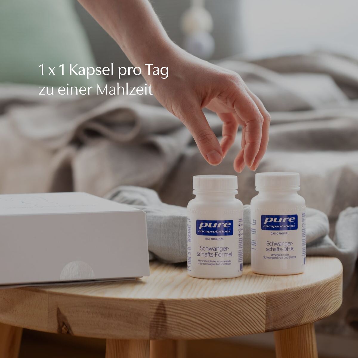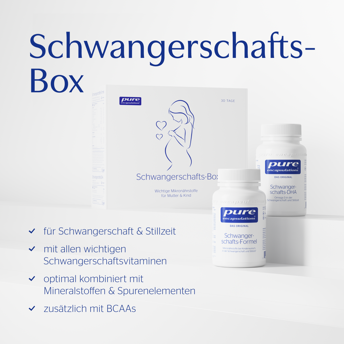 Entdecken Sie die Pure Encapsulations® Schwangerschafts-Box für eine optimale Versorgung von Kinderwunsch bis Stillzeit. Die Kombination aus Folsäure, DHA und weiteren Mikronährstoffen unterstützt die gesunde Entwicklung Ihres Babys und Ihr Wohlbefinden.