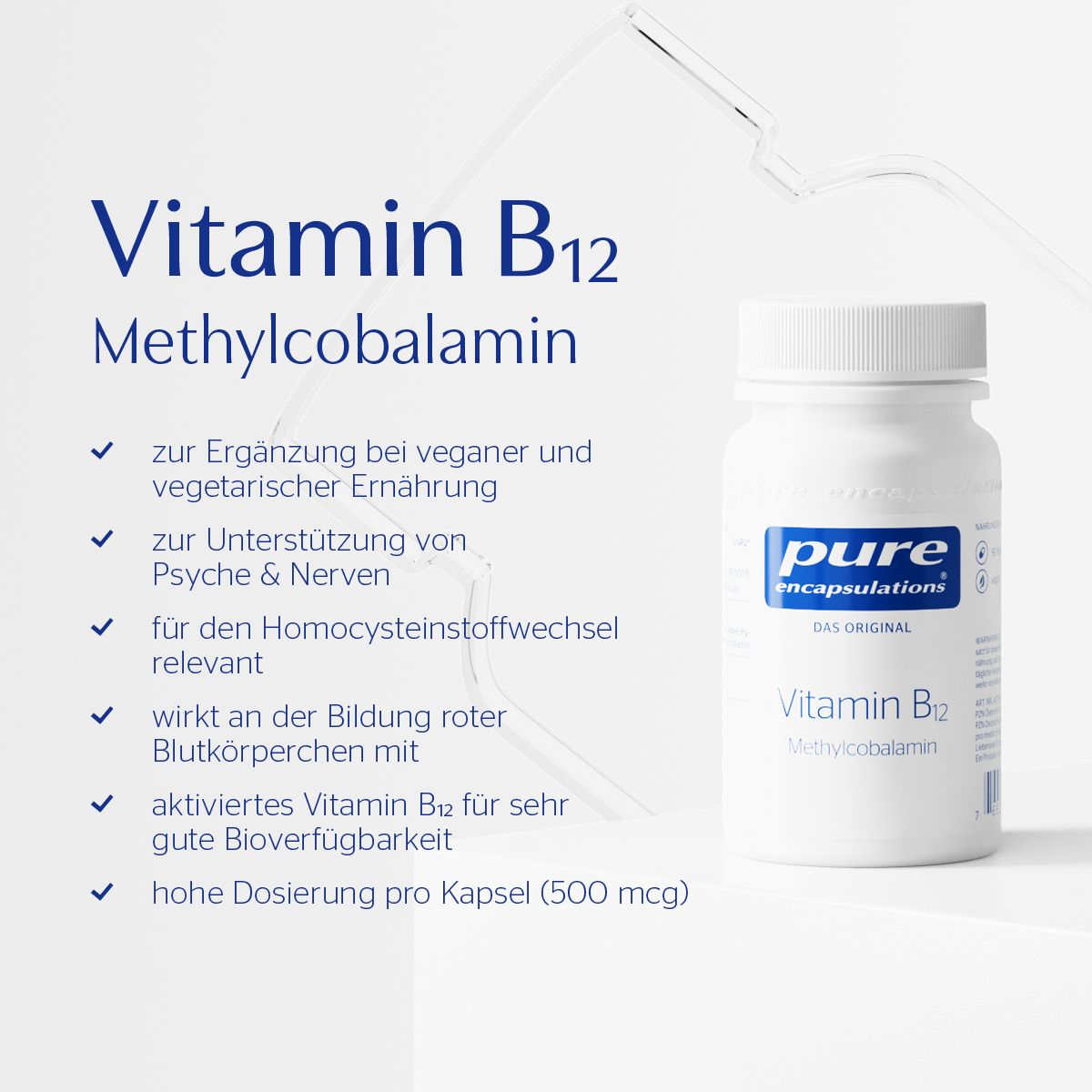pure encapsulations® Vitamin B12 Kapseln sind ein Nahrungsergänzungsmittel mit Methylcobalamin - Vitamin B12 ist gut für den Energiestoffwechsel, das Nervenkostüm und die Bildung roter Blutkörperchen. Besonders Veganer/Vegetarier sollten darauf achten.