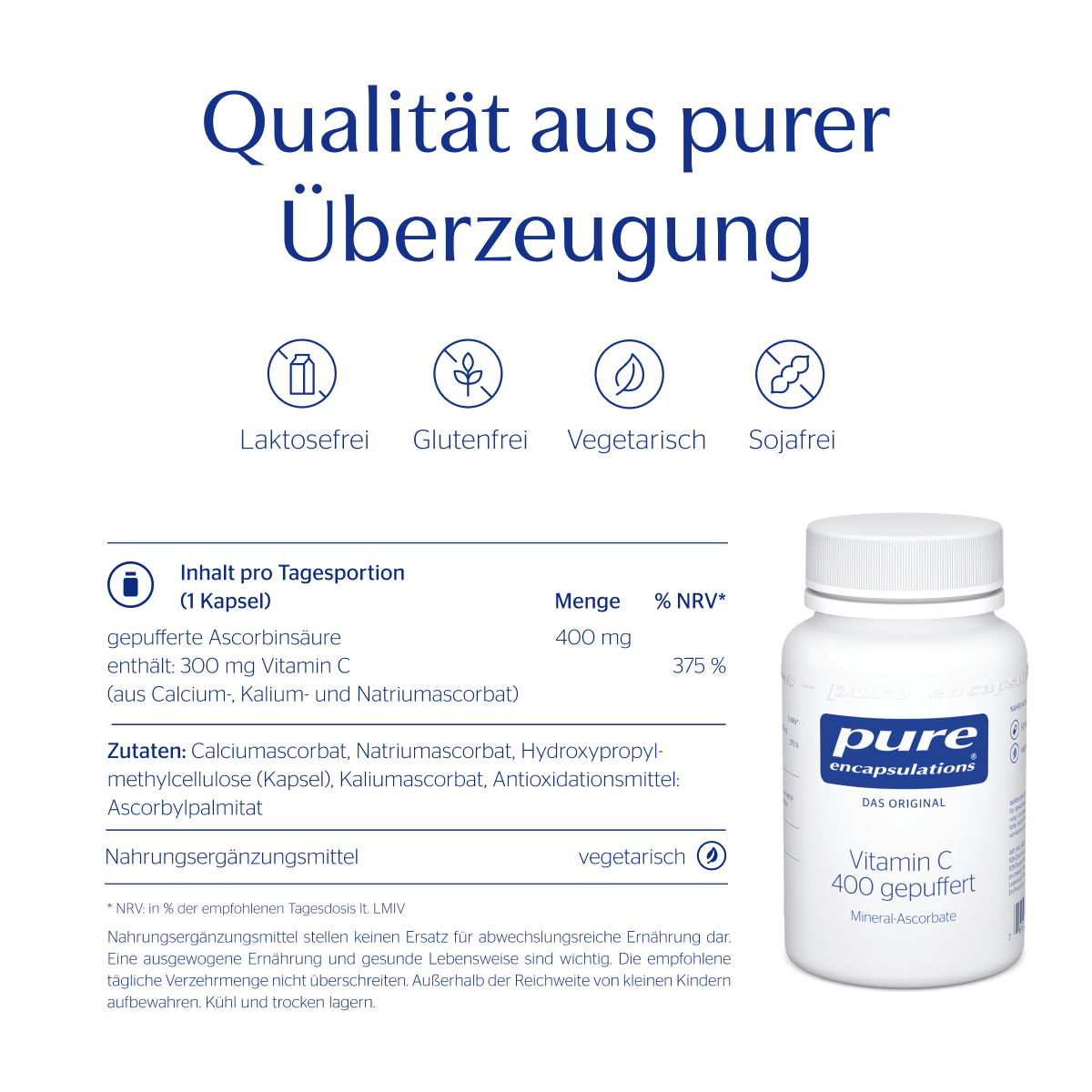 - Inhalt pro Tagesportion (1 Kapsel) Menge gepufferte Ascorbinsäure 400 mg