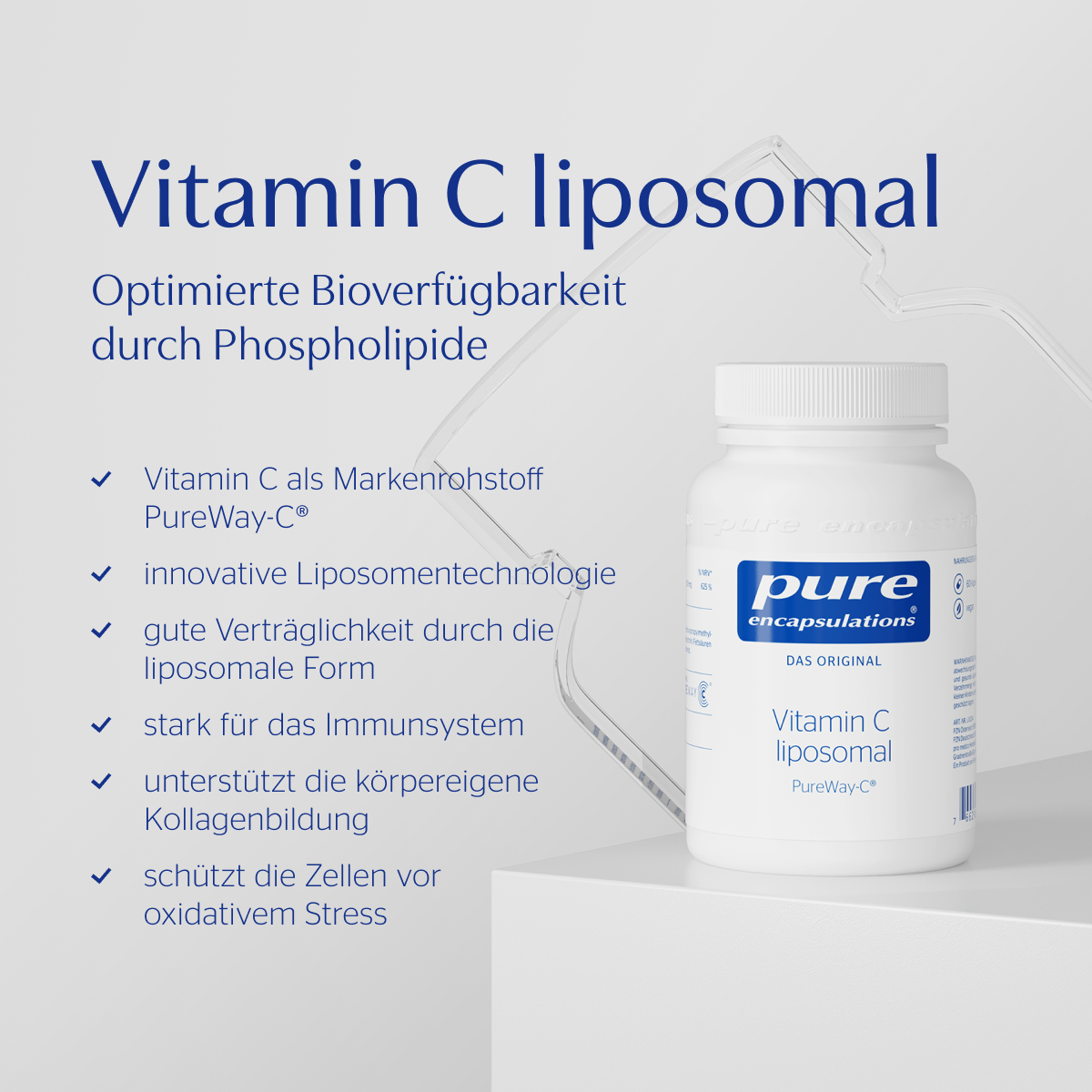 Mit Vitamin C liposomal von Pure Encapsulations® und PureWay-C® erhältst du eine gut verträgliche und besonders bioverfügbare Form von Vitamin C. Unterstütze dein Immunsystem und deine Hautgesundheit auf wissenschaftlich fundierte Weise und profitiere von den zahlreichen gesundheitlichen Vorteilen.