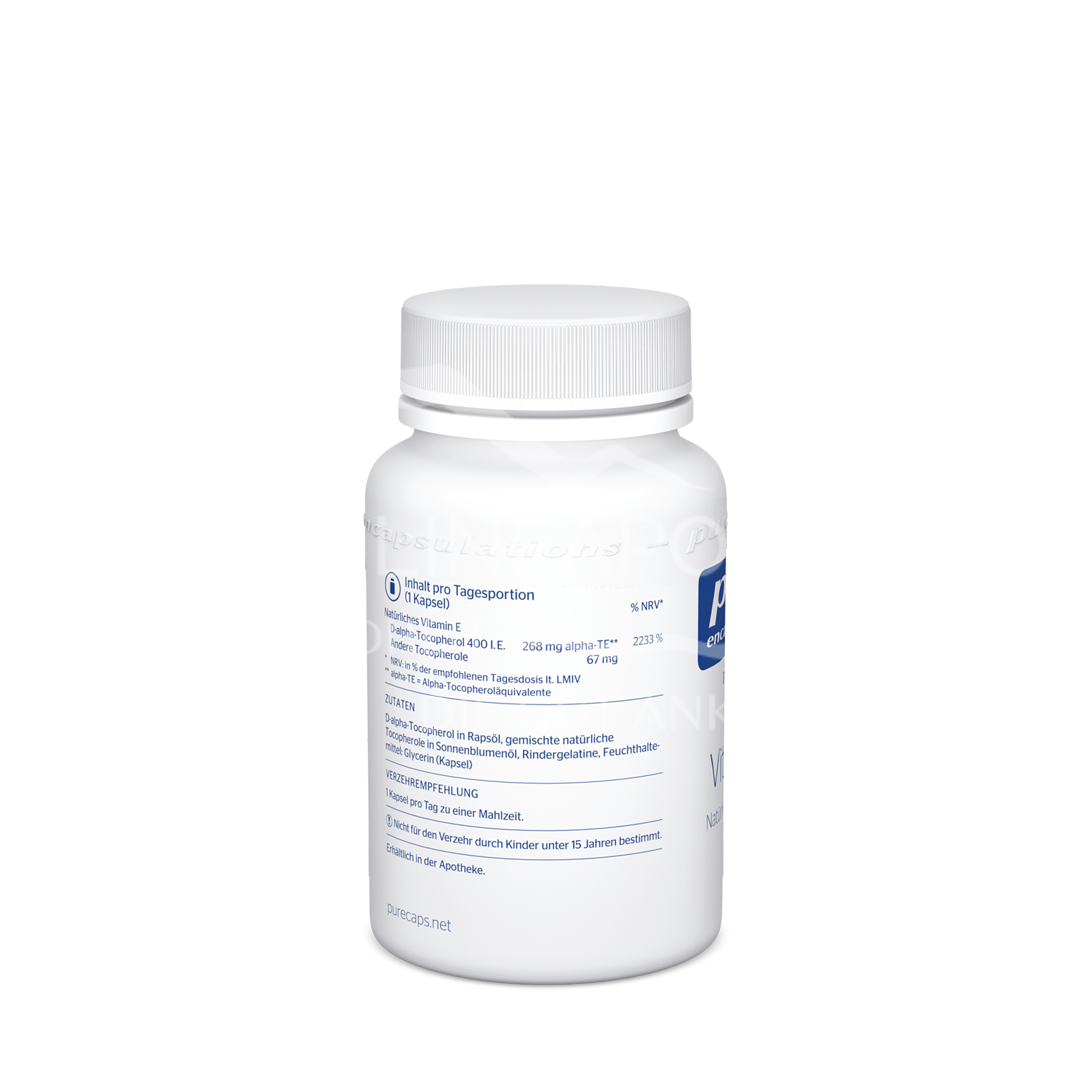 - Zusammensetzung pro Tagesdosis (1 Kapsel) %NRV*: Natürliches Vitamin E aus D-alpha-Tocopherol 400 I.E. 268 mg alpha-TE** 2233 % und andere Tocopherole 67 mg. * NRV: in % der empfohlenen Tagesdosis lt. LMIV. ** alpha-TE = Alpha-Tocopheroläquivalente.