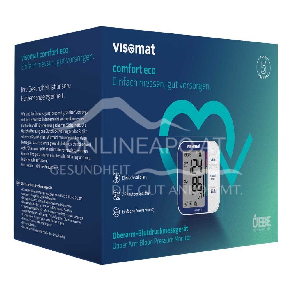 Entdecken Sie das Visomat comfort eco für die einfache und sichere Blutdruckmessung zu Hause. Mit Manschettensitz- und Bewegungskontrolle vermeiden Sie Messfehler. Die Ampelfunktion hilft Ihnen, Ihre Werte sofort richtig einzuschätzen.